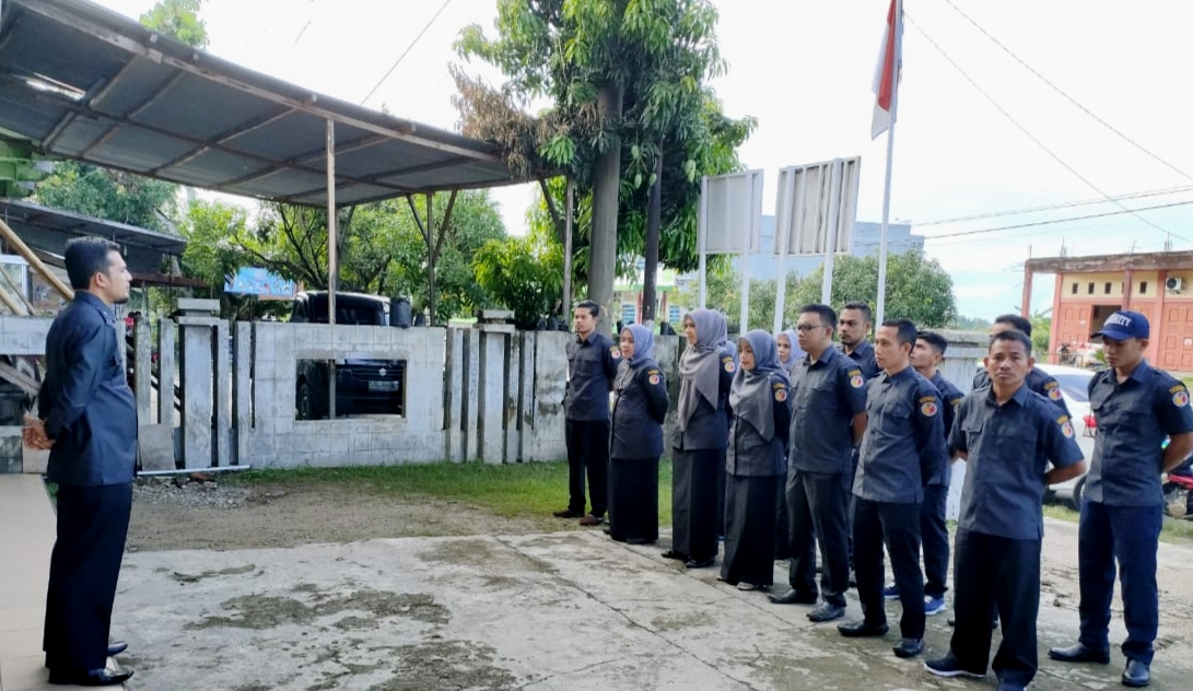 Blangpidie, Koordinator Sekretariat (Korsek) Panitia Pengawas Pemilihan (Panwaslih) Kabupaten Aceh Barat Daya (Abdya), Haris Firmansyah, S.H.I. memimpin apel pagi. senin (7/10).