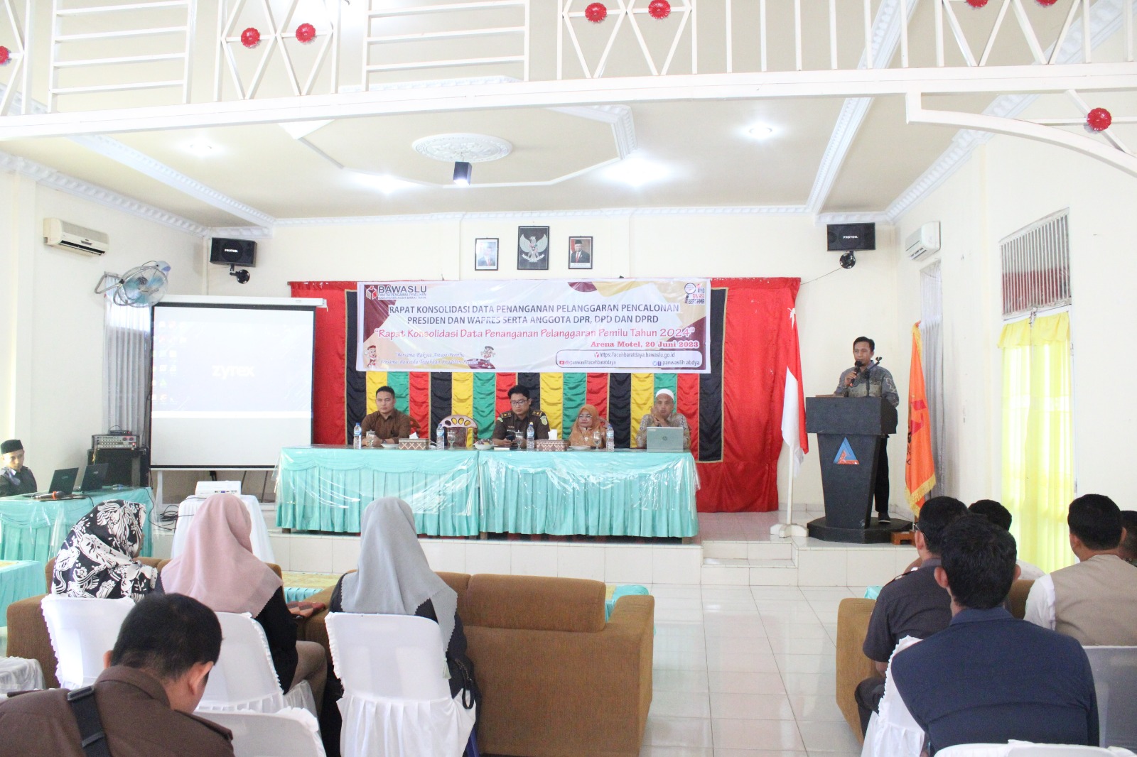 Blangpidie, Panitia Pengawas Pemilihan (Panwaslih) Kabupaten Aceh Barat Daya (Abdya) melaksanakan rapat konsolidasi data penanganan pelanggaran pencalonan Presiden dan Wapres serta anggota DPR, DPD dan DPRD Pemilu Tahun 2024, di Arena Motel, Selasa (20/06/2023).