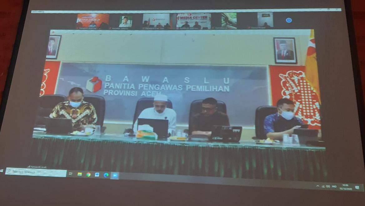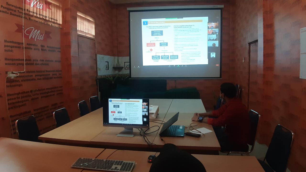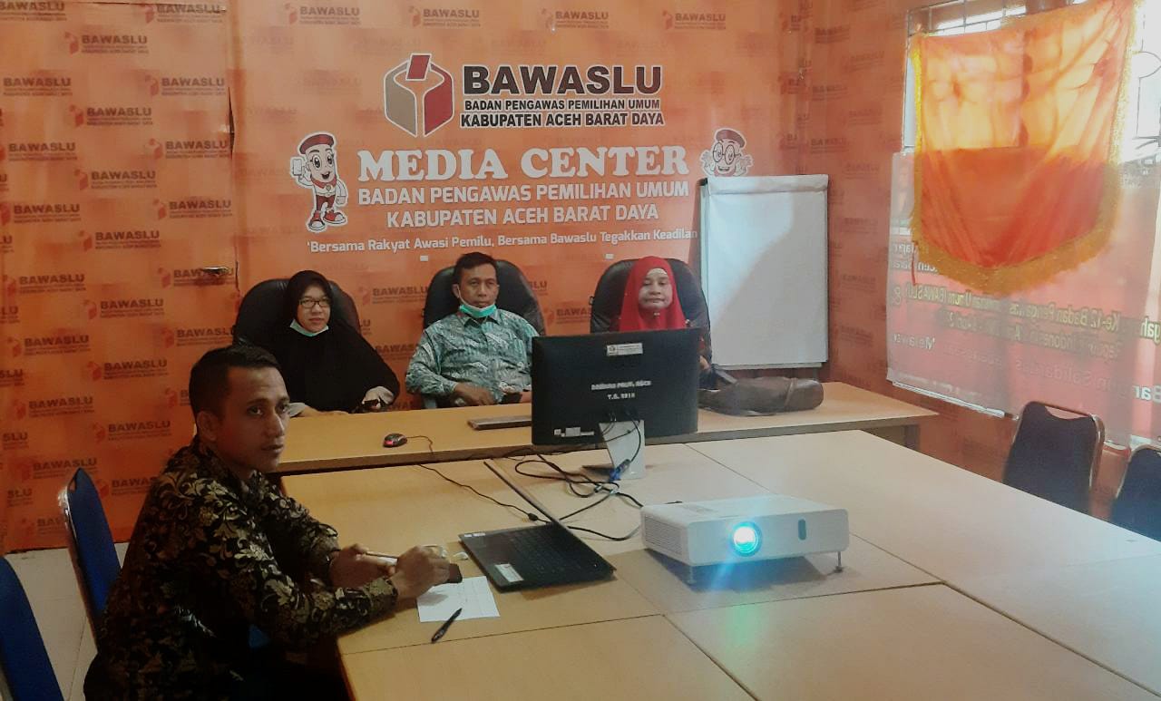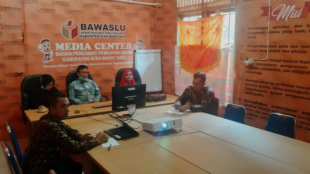 Aceh Barat Daya, Panwaslih Kabupaten Aceh Barat Daya mengikuti rapat secara daring menggunakan zoom cloud metting di aula Sekeretariat Panwaslih Abdya dalam rangka Optimalisasi Peran Pengelolaan Penyajian Informasi dan Dokumentasi (PPID) untuk keterbukaan informasi publik yang di selenggarakan oleh Panwaslih Provinsi Aceh dan ikuti oleh seluruh jajaran Panwaslih Kabupaten/Kota se Aceh pada Jumat (16/10/2020).