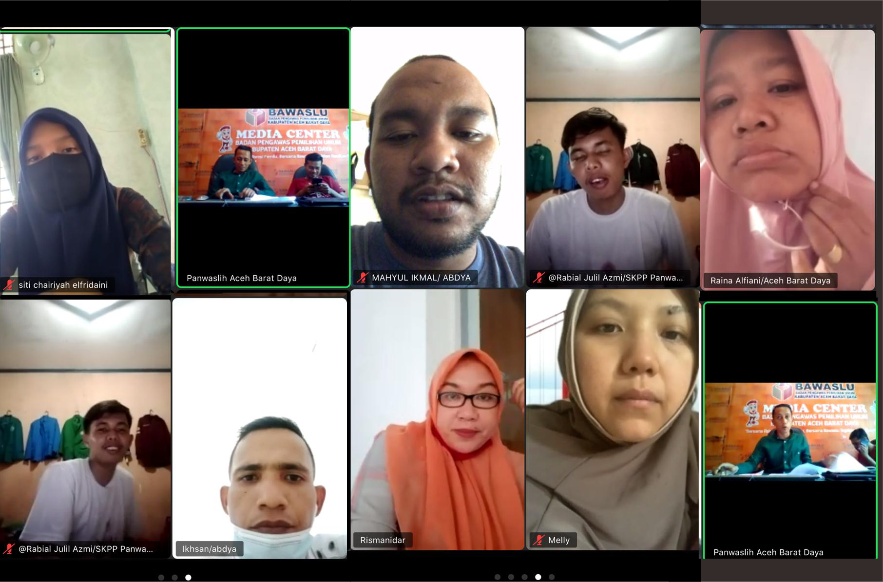 Aceh Barat Daya Panwaslih Kabupaten Aceh Barat melakukan simulasi penggunaan Zoom Metting dalam rangka Diskusi Sekolah Kader Pengawasan Partisipatif (SKPP) Daring pada hari ini Kamis, 11 Juni 2020.