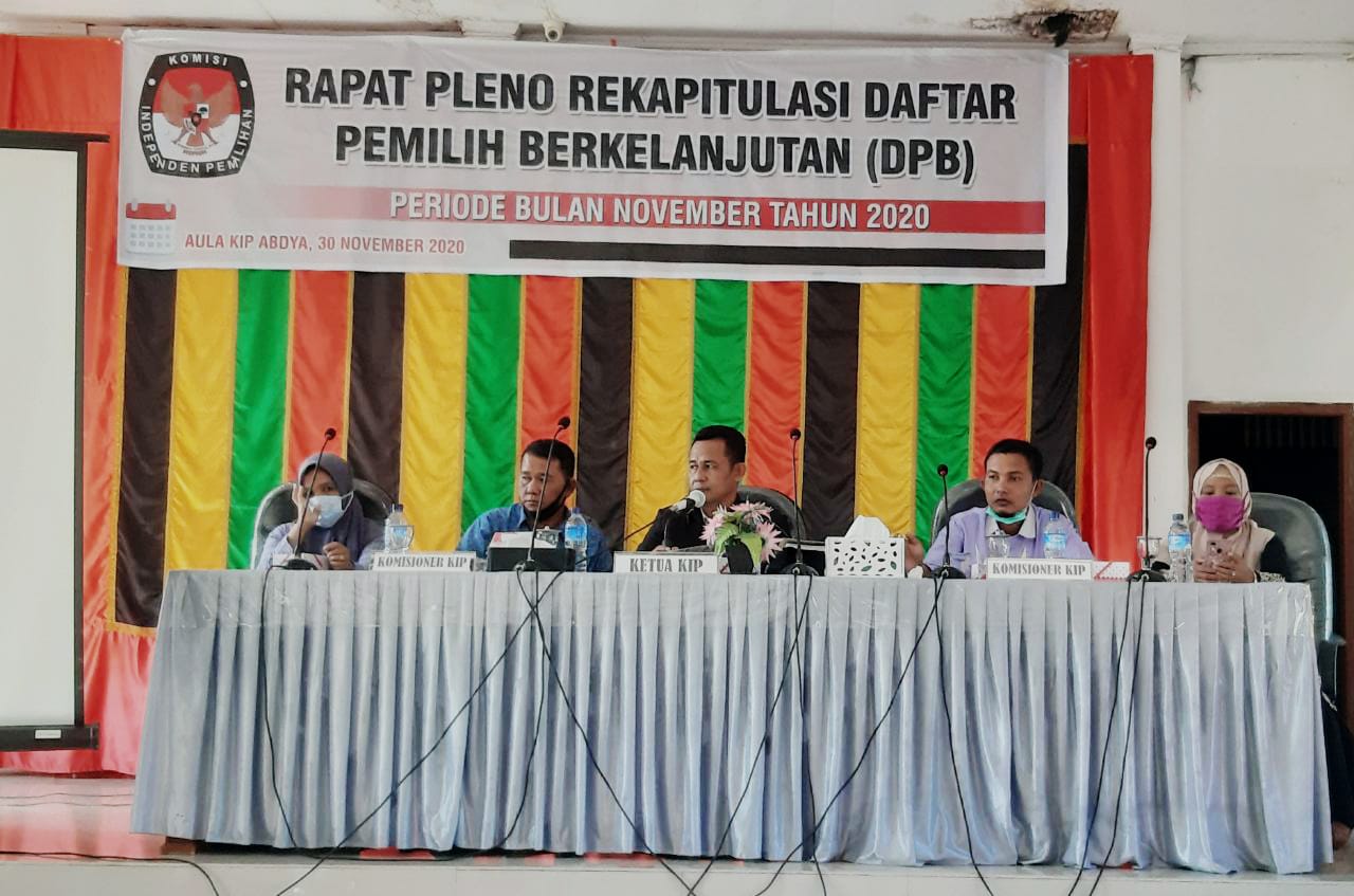 Kegiatan ini turut dihadiri oleh Ketua Panwaslih, seluruh Komisioner KIP, Kapolres diwakili oleh Kasat Intelkam, Kepala Disdukcapil dan Pimpinan Partai Politik Tingkat Kabupaten Abdya yang dilaksanakan di Aula KIP Kabupaten Aceh Barat Daya pada hari Senin (30/11/2020).