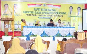 Blangpidie, Ketua Panwaslih Kabupaten Aceh Barat Daya Hendra menghadiri sebagai narasumber dalam rangka rapat kerja daerah (Rakerda) dan orientasi caleg DPRK Partai Golkar Kabupaten Aceh Barat Daya di laksanakan di Wisma Khana Pakat, Sabtu (14/10/2023).