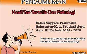 Dalam rangka melaksanakan amanat Undang–Undang Nomor 7 Tahun 2017 tentang Pemilihan Umum, setelah melakukan penilaian atas Tes Tertulis dan Tes Psikologi Calon Anggota Panwaslih Kabupaten Aceh Barat Daya, Aceh Tamiang, Aceh Timur, Gayo Lues, Nagan Raya, dan Kota Langsa Zona III Provinsi Aceh, ber