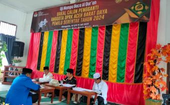 Blangpidie, Panwaslih Kabupaten Aceh Barat Daya melakukan pengawasan uji mampu baca Al-Quran bakal calon pengganti anggota DPR Kabupaten Aceh Barat Daya Pemilu Serentak Tahun 2024 oleh tim penguji yang di laksanakan bertempat KIP Abdya, Senin (10/07/2023).