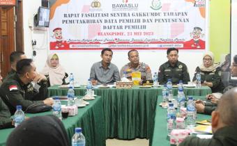 Blangpidie, Panitia Pengawas Pemilihan (Panwaslih) Kabupaten Aceh Barat Daya (Abdya) melaksanakan rapat fasilitasi pemutakhiran data pemilih bersama Sentra Penegakan Hukum Terpadu (Gakkumdu) dalam menghadapi Pemilihan Umum (Pemilu) Tahun 2024, yang di laksanakan bertempat Panwasl
